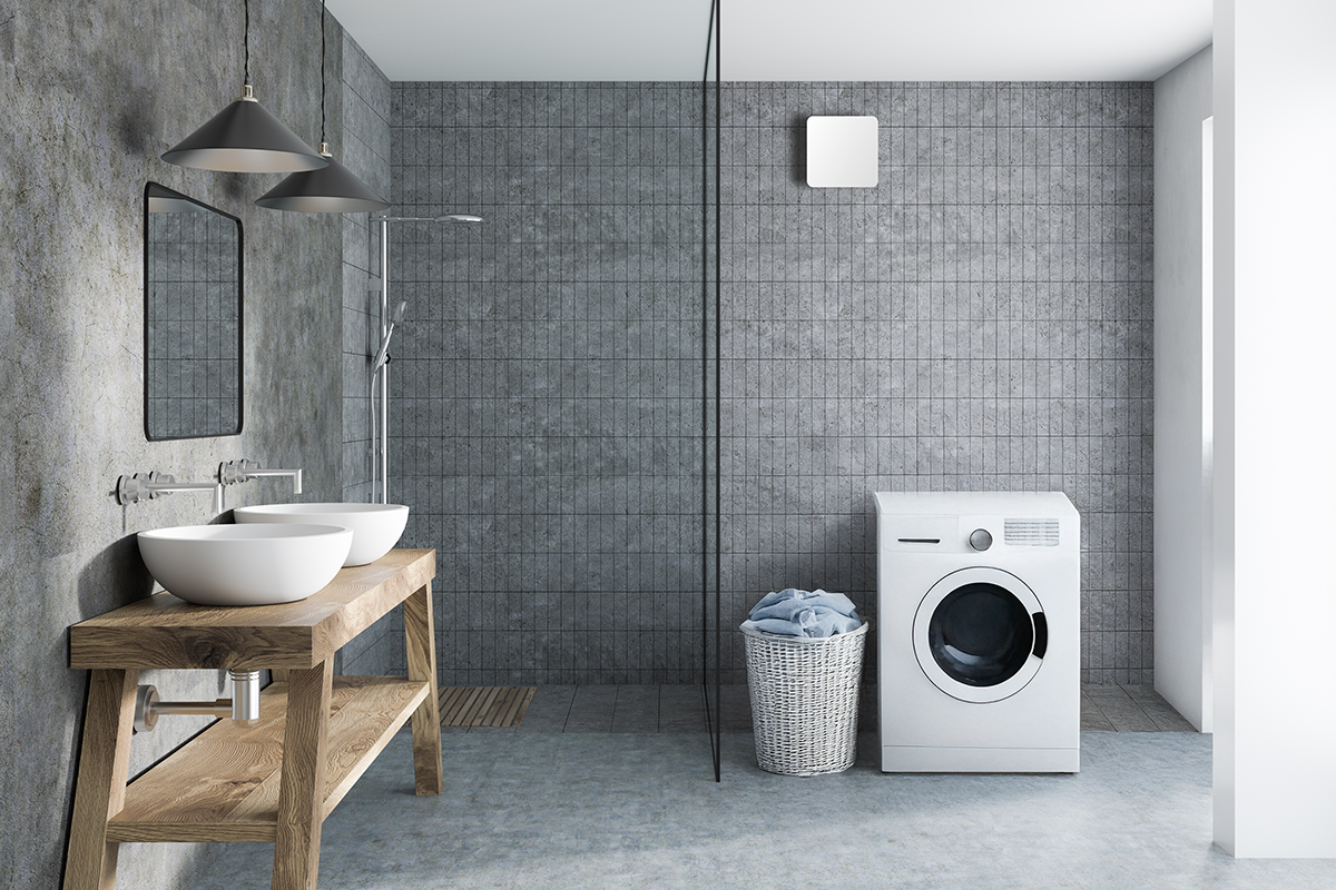 Toalett, dusch och tvättstuga. Speciellt utformad för att inte sprida fukt från ett våtrum till andra torra rum.