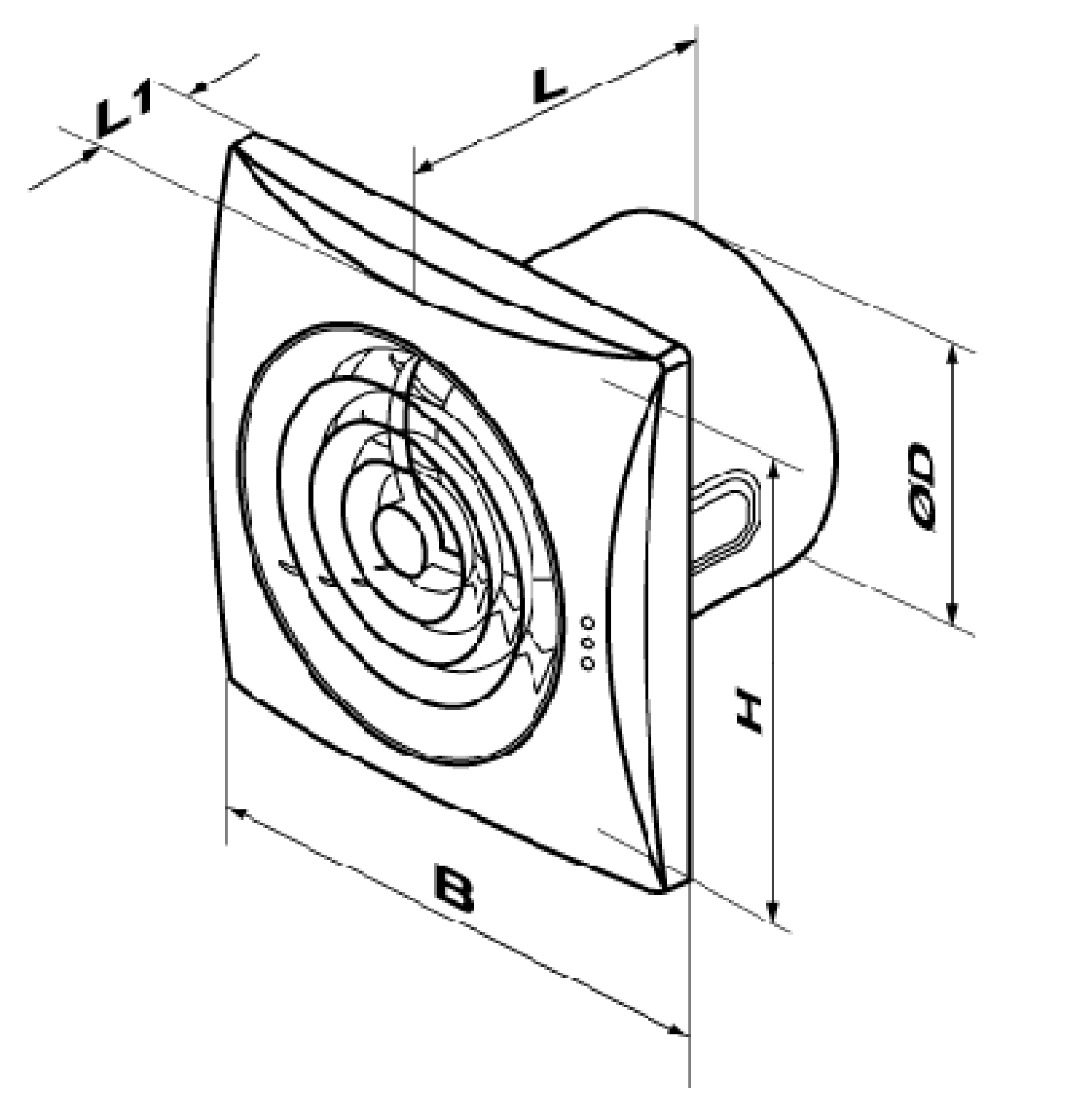 Fläkten kan antingen takmonteras eller väggmonteras.
