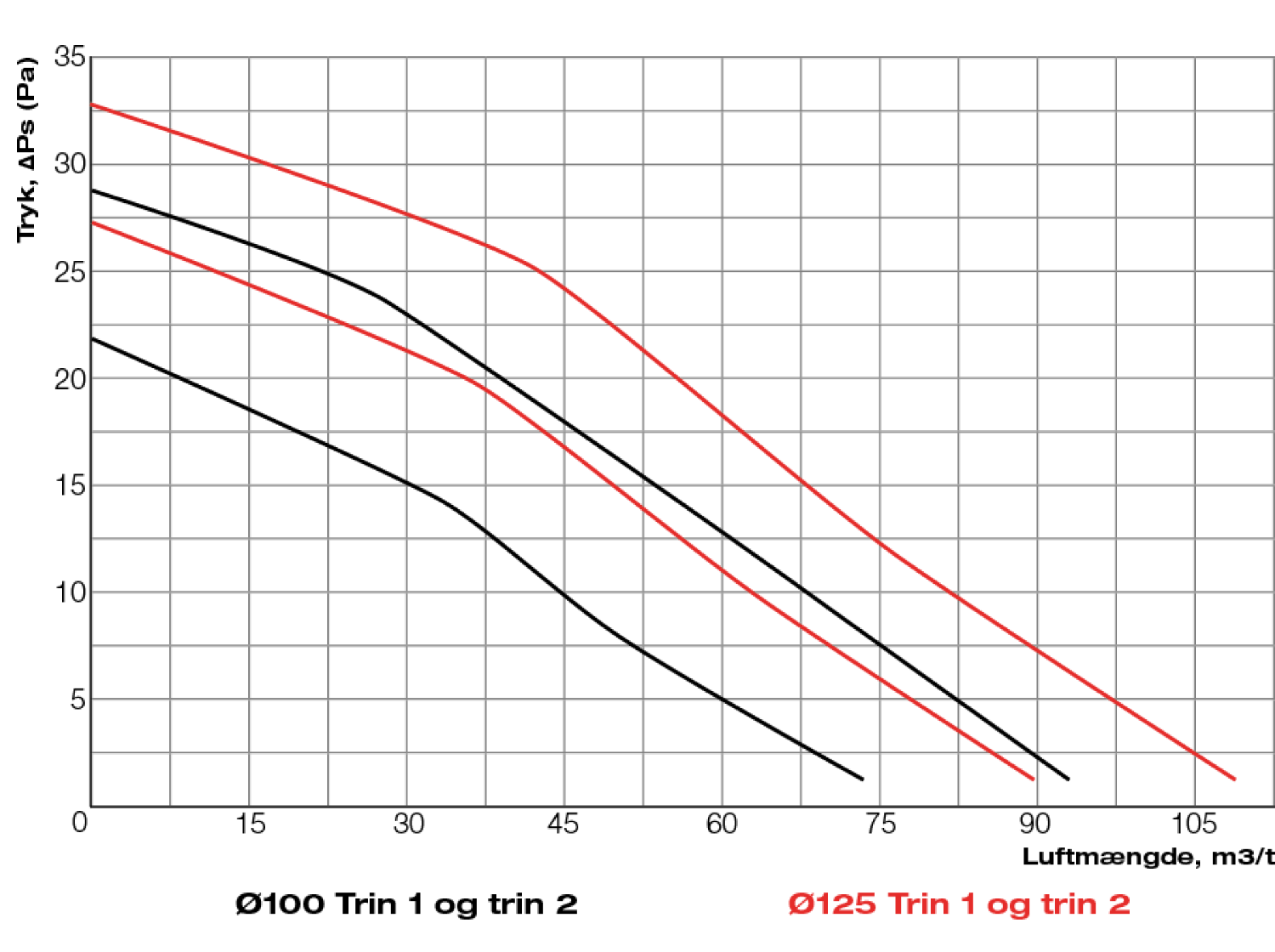 Fläkten kan anslutas till kanaler på både Ø100 mm och Ø125 mm.