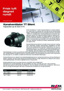 DUKA Ventilations TT silent kanalfläktar är extra ljudisolerade för tyst drift. Kanalfläktarna kan användas med Ø125 mm ventilationsrör. Kan användas för kombinerad till- och frånluftsventilation i kommersiella och industriella utrymmen med höga ljudkrav, t.ex. bibliotek, konferensrum, klassrum, förskolor, lekrum etc.