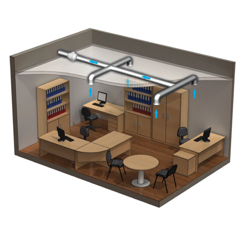 Kanalfläkten är också lämplig för utsug i våtrum, vardagsrum och förråd.