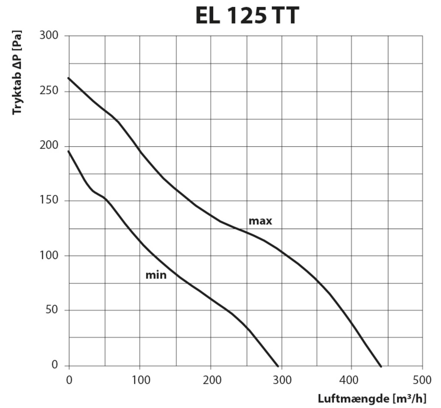 Fläkten har två steg och kan regleras antingen via två faser direkt via en omkopplare till antingen 220 eller 280 m3/h. Kanalfläkten kan anslutas till en extern styrenhet och regleras steglöst.