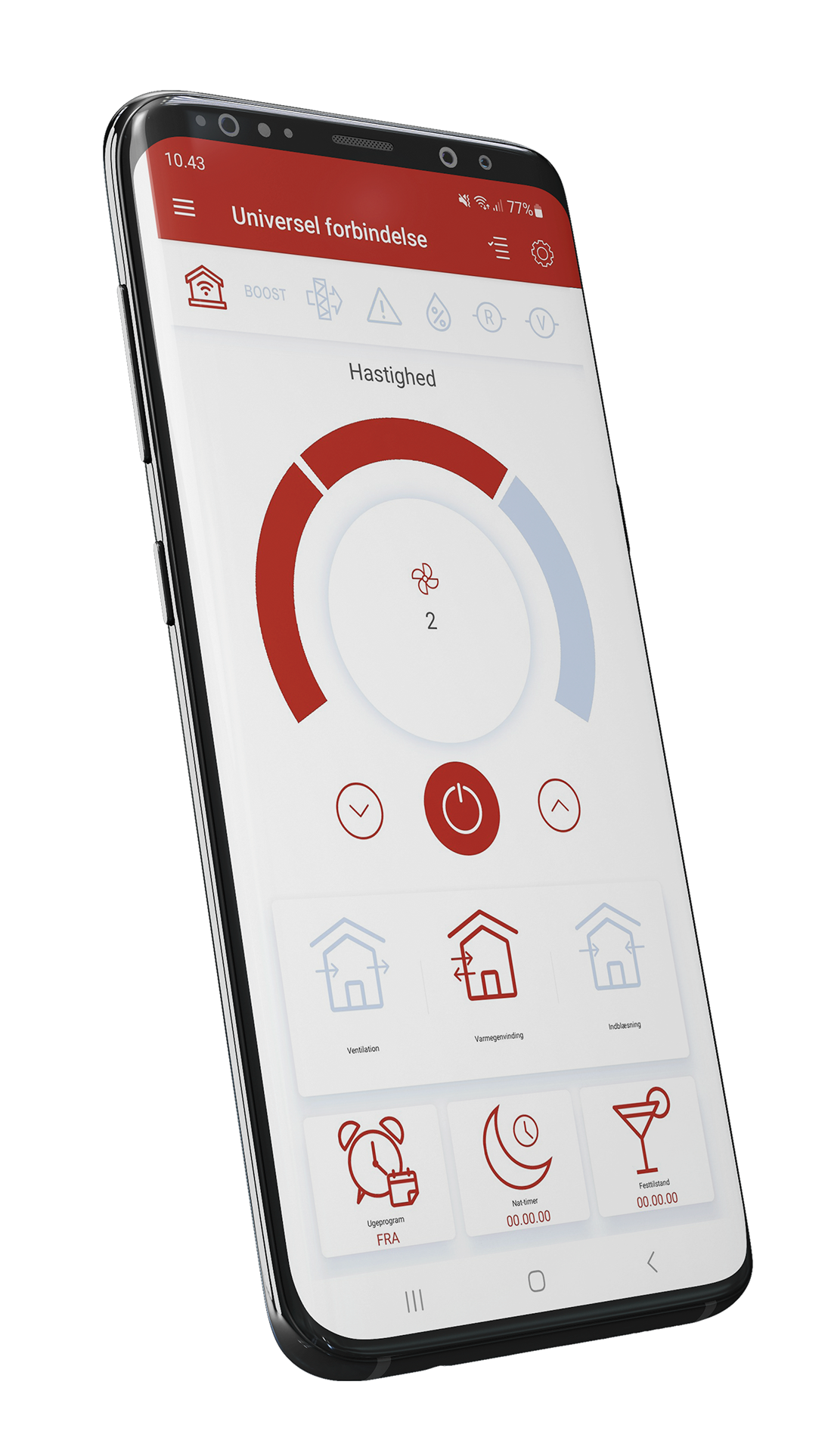 Med DUKA Smart App kan enheten enkelt manövreras. Enheten kan anslutas till hemmets Wi-Fi och kan styras från vardagsrummet, sovrummet och köket. I appen kan du ändra ventilationshastigheten, ange ett veckoschema för att anpassa ventilationen till hemmets rytm och reglera luftvolymerna för de olika ventilationshastigheterna kan enkelt justeras i appens avancerade meny och många andra funktioner.